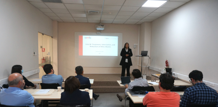 Tras una presentación sobre aspectos generales del AMTC, a cargo de su jefa de Transferencia Tecnológica, Victoria Villarroel, la delegación del CIMS conoció proyectos y avances del Centro en materia de hidrometalurgia y nuevos procesos; recuperación y tratamiento de aguas, y automatización para minería, exposiciones a cargo de, respectivamente, el Dr. Humberto Estay, la Dra. Andreina García y el Dr. Mauricio Correa.