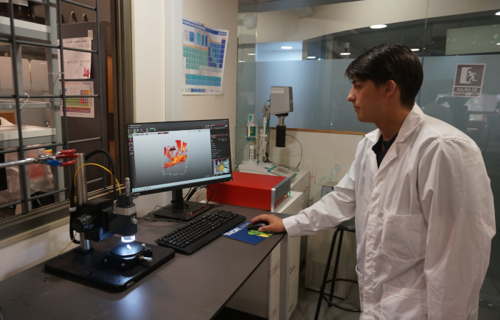 Actualmente, el estudio en el que se está utilizando el Ganymede es el entendimiento dinámico del crecimiento y evolución del ensuciamiento de membranas en por cristalización de sal en procesos de destilación y cristalización por membranas. “Este es el tipo de proyectos para el que es sumamente útil contar con este tomógrafo en el AMTC, pues nos permite hacer el seguimiento del fouling en línea. Podremos analizar esta evolución mediante modelos en 3D y evaluar el crecimiento de la incrustación en la membrana, todo en tiempo real”, cuenta la investigadora Michelle Quilaqueo, del equipo de desarrollo de procesos del AMTC.